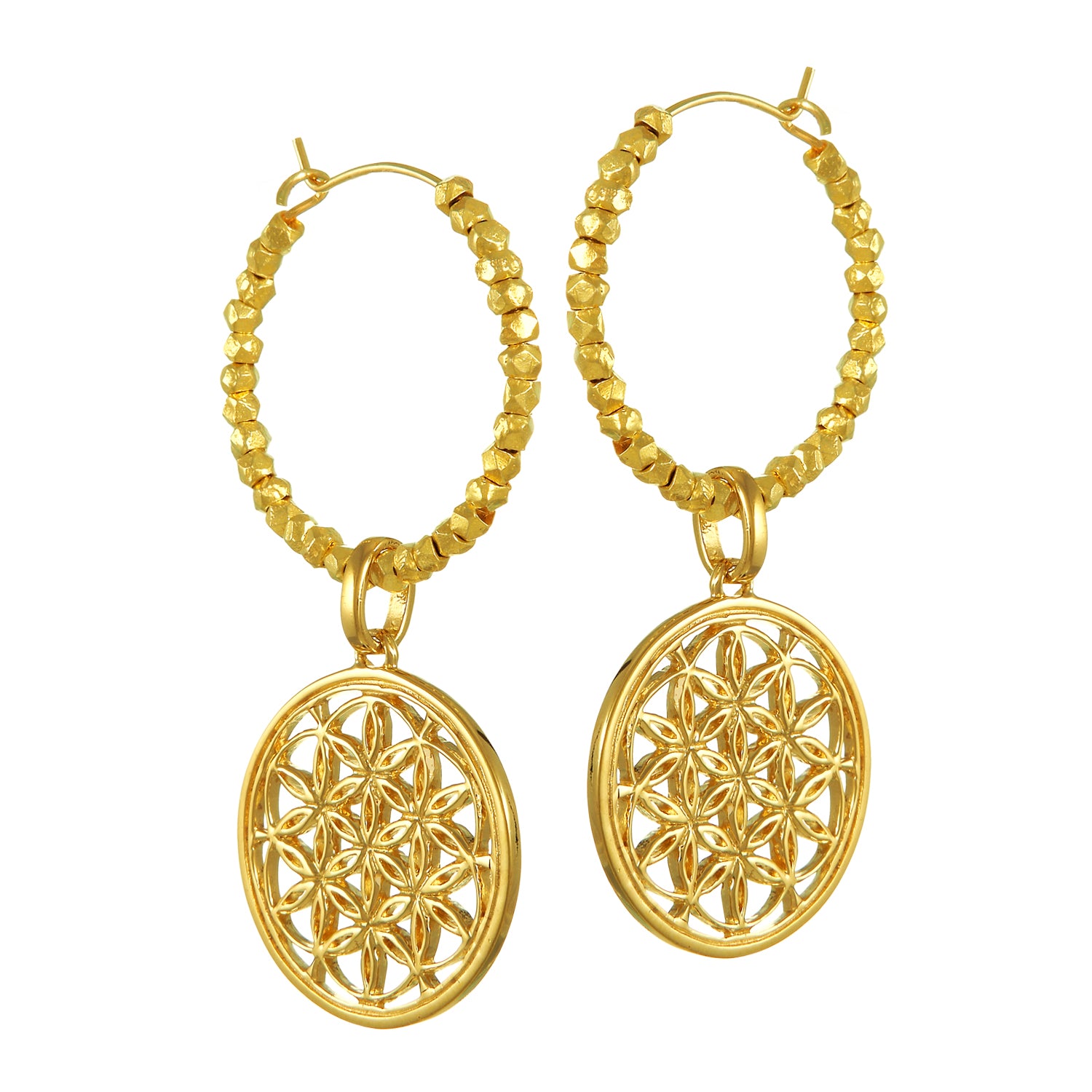 Vergoldete Kreolen mit der Blume des Lebens - Schutz und Energie