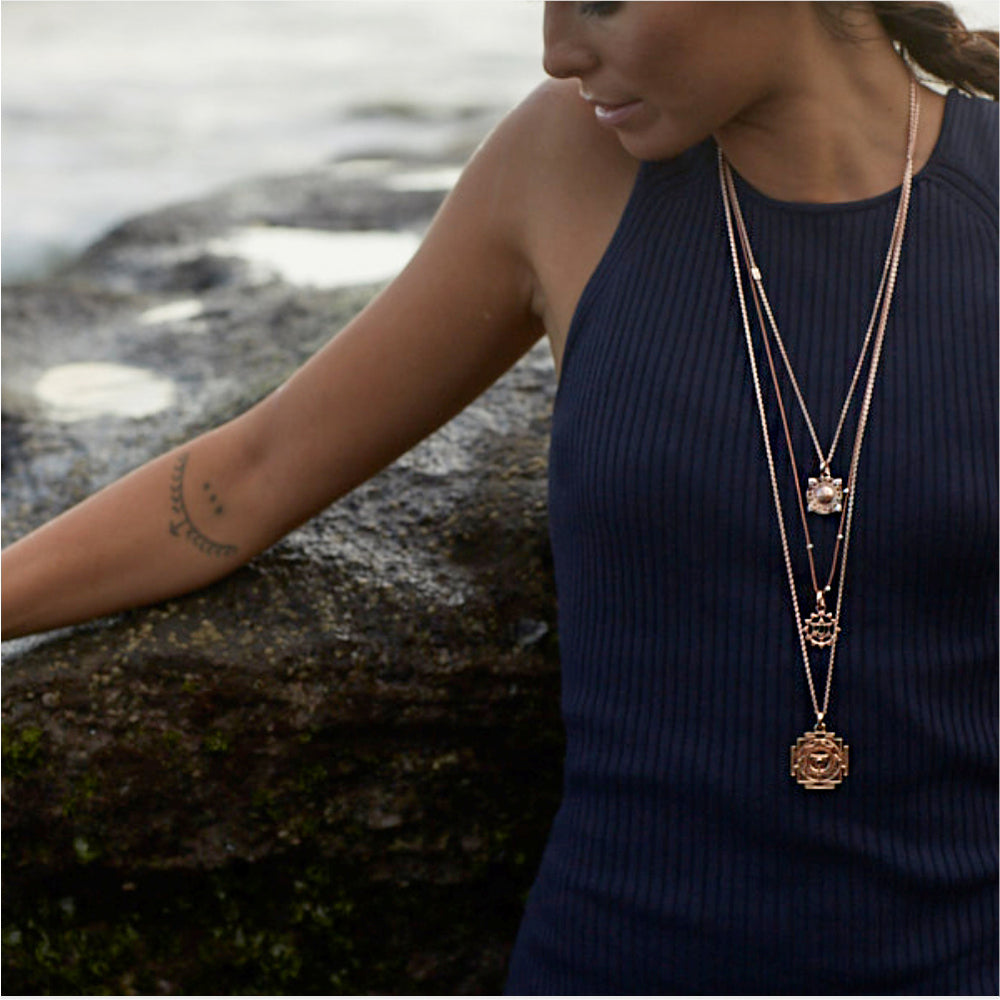 Als spirituelle Praktiker und ausgebildete Designer kreieren wir Yantra Meditationsschmuck, der sowohl authentisch als auch wunderschön ist. Unsere hochwertigen Yantra Anhänger bilden akribisch genau die traditionellen Yantra Darstellungen mit höchster Handwerkskunst ab. Yantra Muster sind immer symmetrisch um einen zentralen Ursprungspunkt angeordnet, der als Bindu bekannt ist und in dem die physische und spirituelle Welt enthalten ist. Ihre ausbalancierten Formen unterstützen die Konzentration und den Fokus und helfen, unseren Geist auszugleichen. Die Yantra Muster auf unserem Meditationsschmuck sind unendlich faszinierend und wunderbare Hilfsmittel für deine spirituelle Praxis.