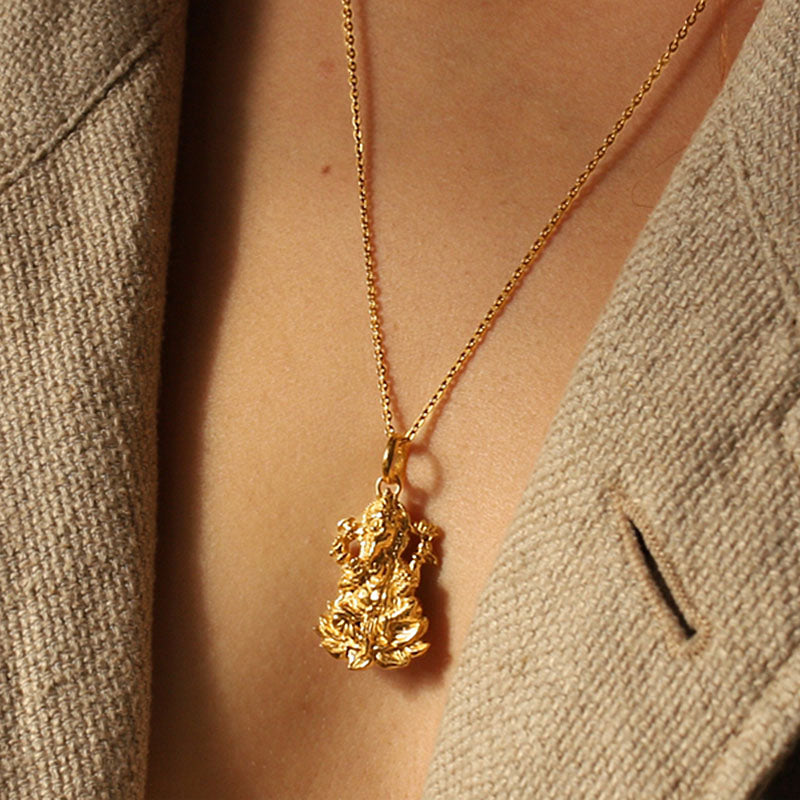 Mit seinem Elefantenkopf und seinem Kugelbauch ist Ganesha einer der sofort erkennbarsten, hinduistischen Götter. Sein Status als Gott des Neuanfangs und Beseitiger von Hindernissen macht ihn zu einer beliebten Figur. Ganesha bringt nicht nur Glück für neue Unternehmungen, sondern ist auch der Schutzpatron von Autoren, Intellektuellen und allen, die schreiben oder geistige Arbeit verrichten, was ihn zu einem Symbol für Weisheit und Erfolg macht.